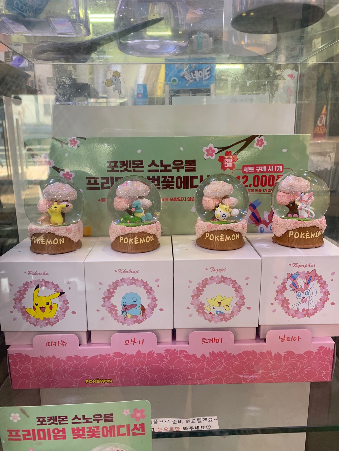 총 4개의 피카츄, 꼬부기, 토케피, 님피아(희귀)의 포켓몬 스노우볼을 판매하고 있다.