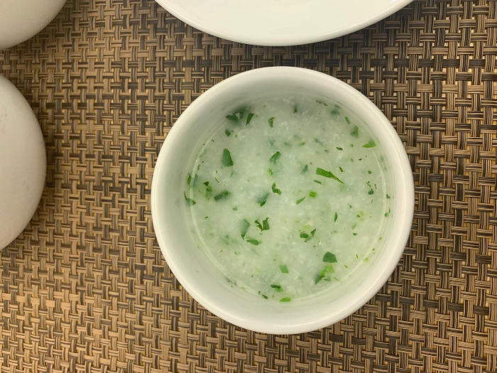 버섯해물냉채/도다리쑥죽/가자미찜/저육구이/갈치조림/후식으로 구성되어 있다.