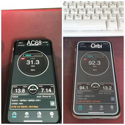 기존에 30메가 대의 속도가 측정되던 곳에서 동일하게 측정하였을 때!