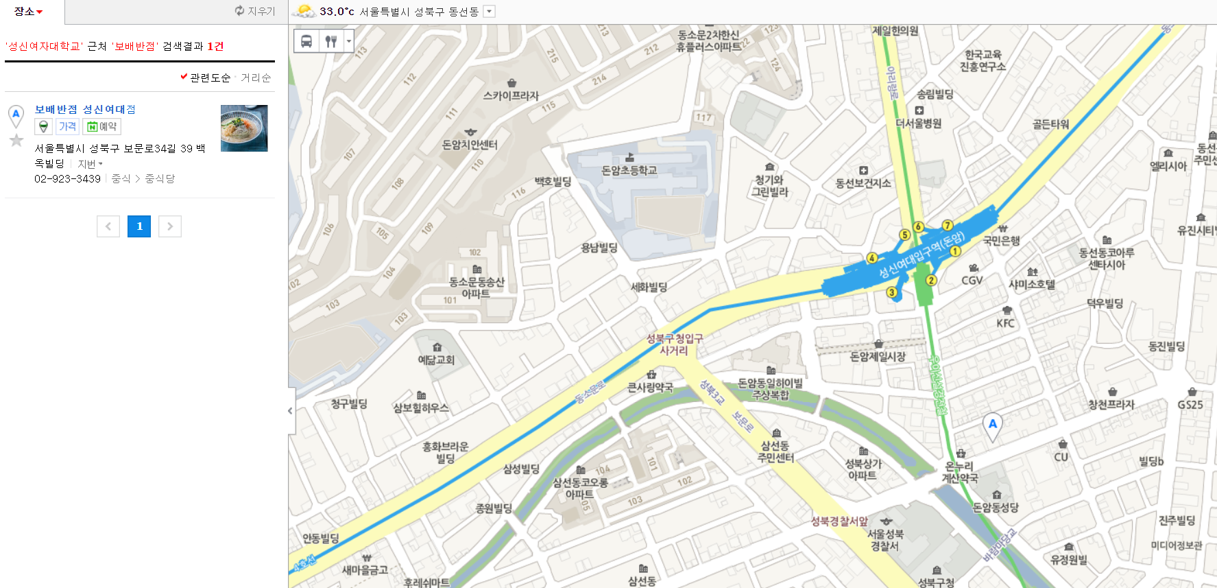 성신여대역에서 가까운 곳에 위치한 보배반점