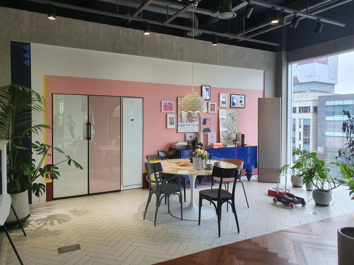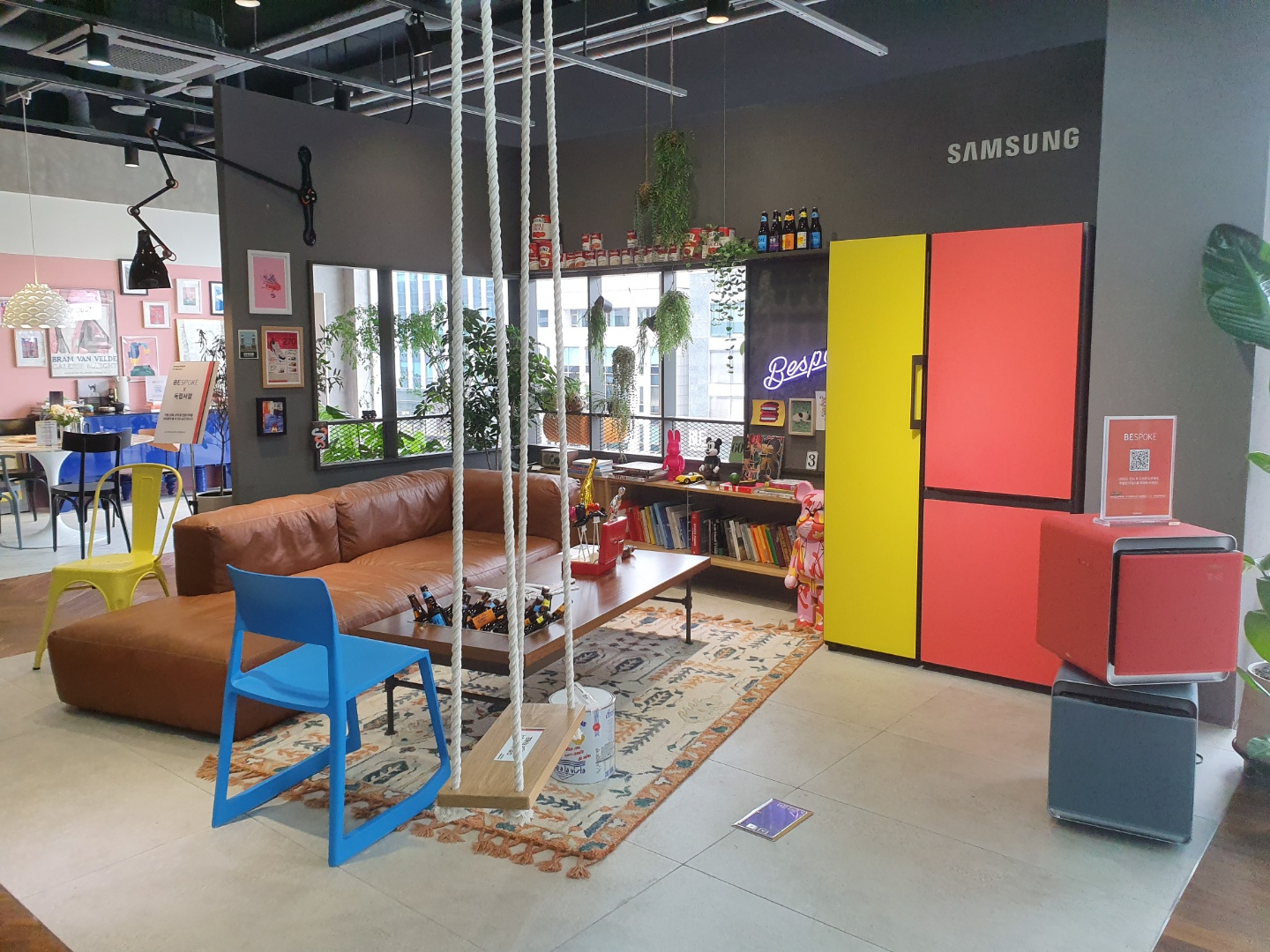 넓은 공간에 삼성전자 가전으로 꾸며놓은 곳이며, 파스텔톤의 가전이 눈에 들어온다.
