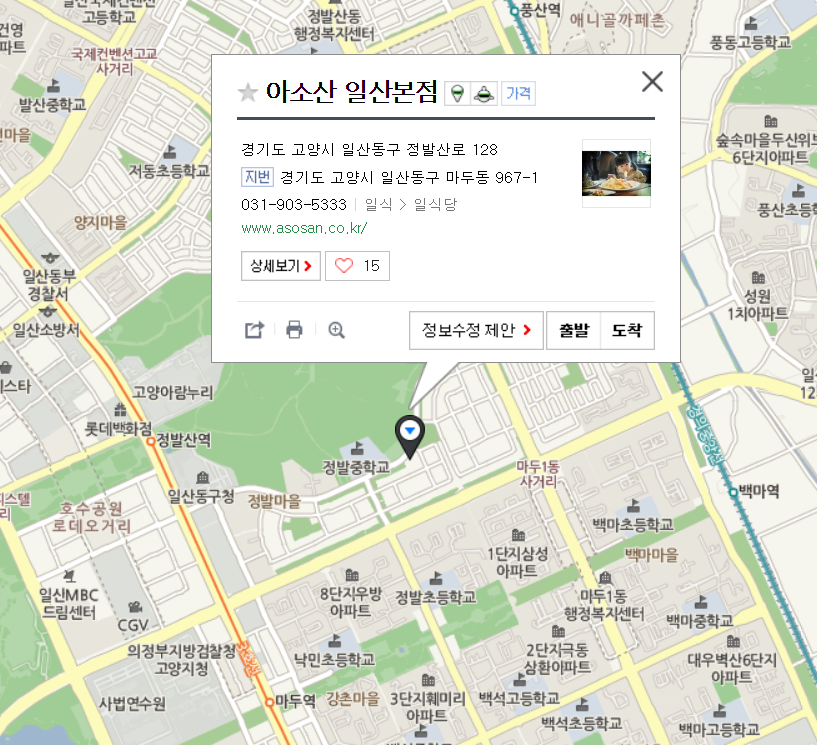 정발산역 근처에 정발 중학교 옆에 위치하고 있다.