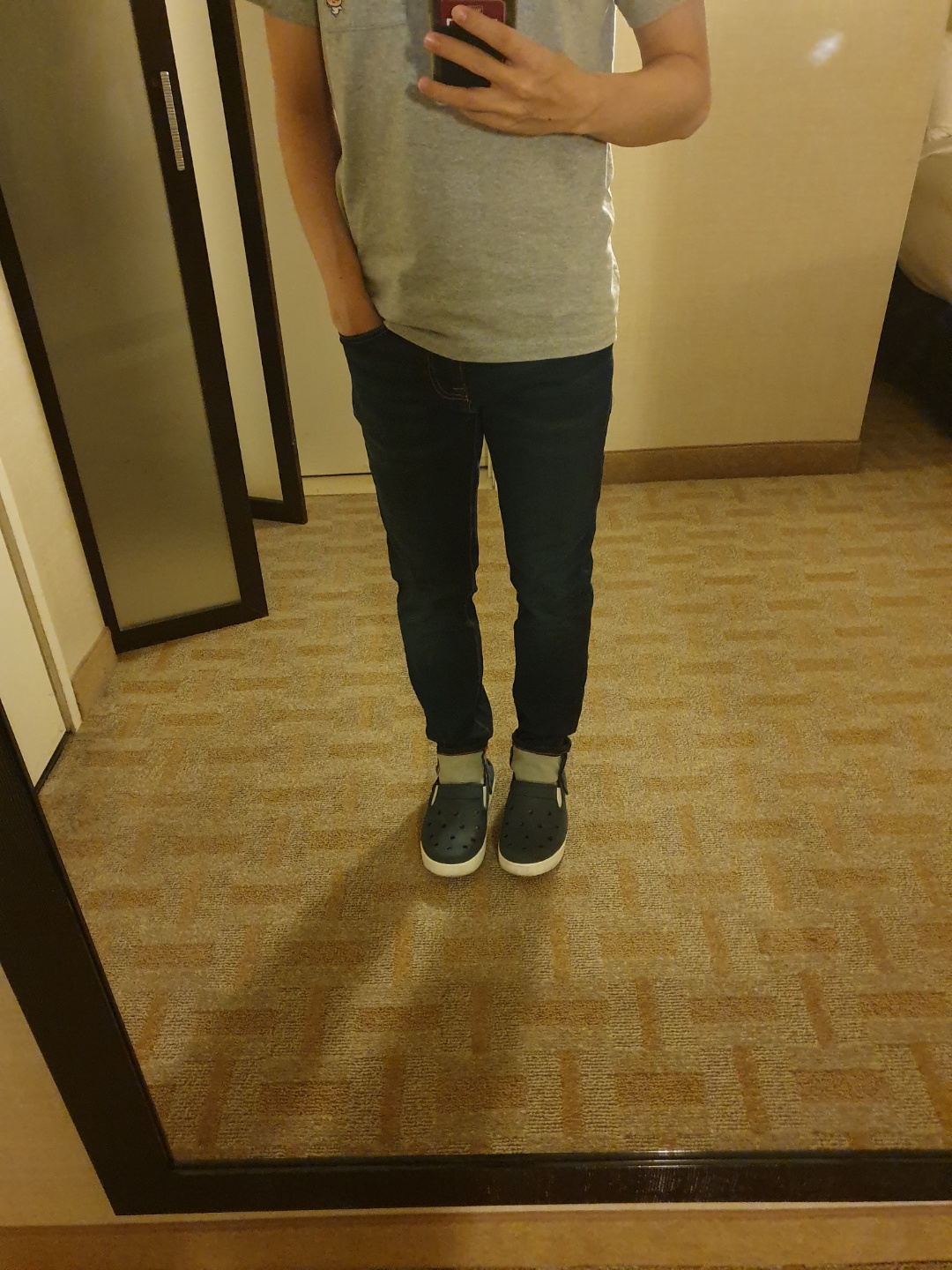 아울렛에 이미 많이 싸이즈가 나가버려서 간신히 구한 바지.