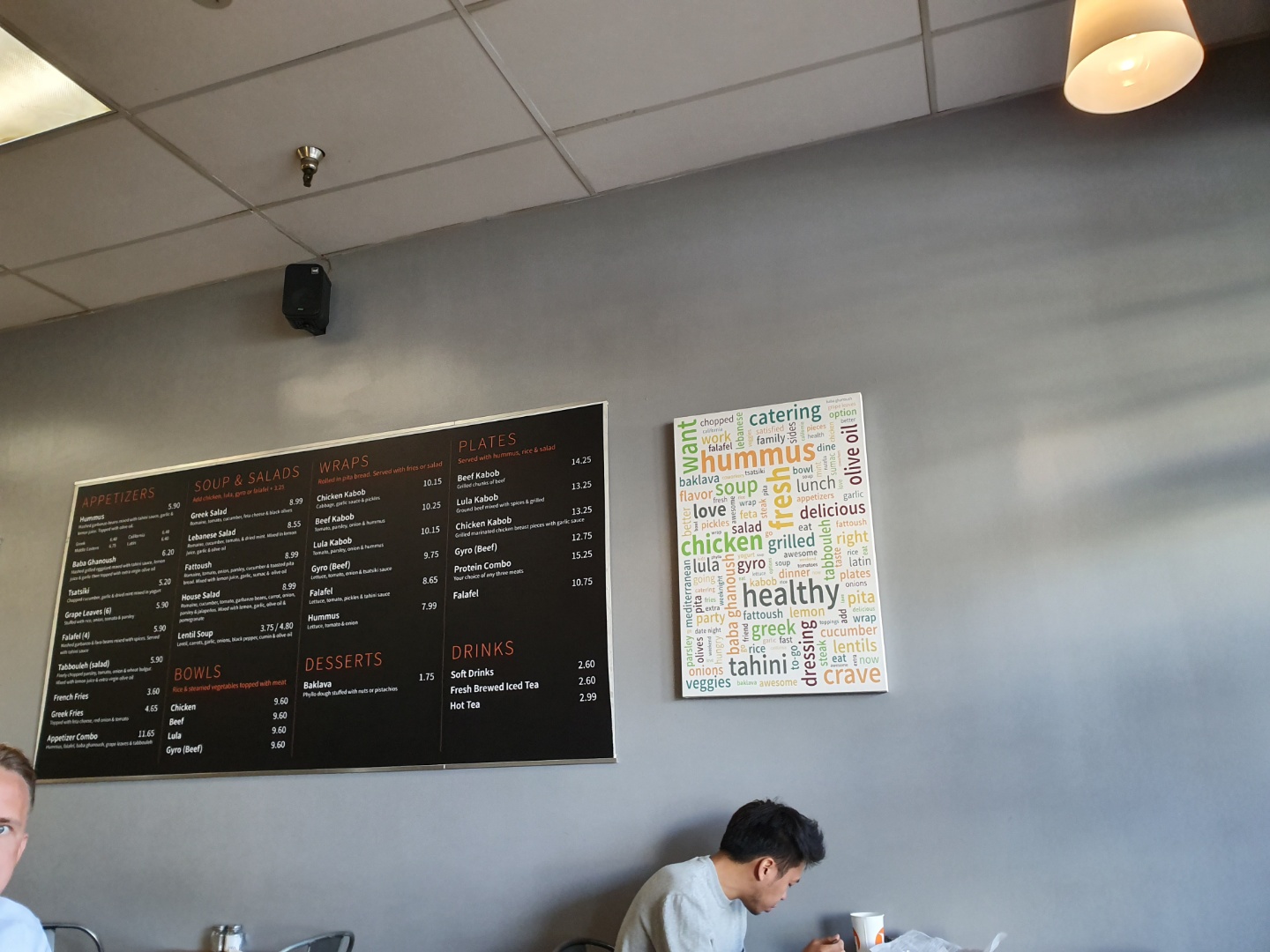 메뉴판, 플레이트로 시켰고, beef랑 chicken이랑 다른 메뉴들도 있습니다.