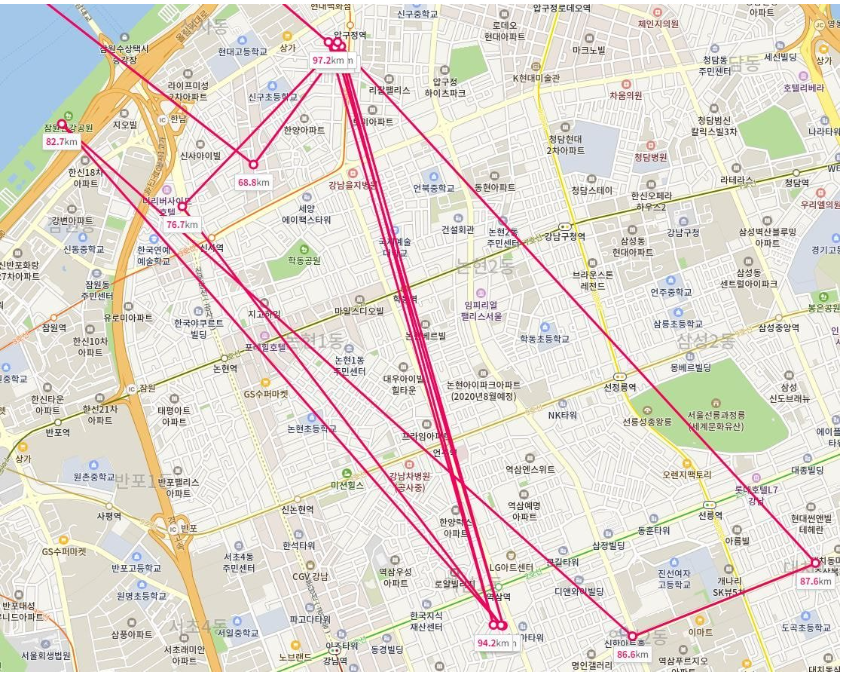 압구정 역삼은 2~3일간 쉴새없이 왕복했으며