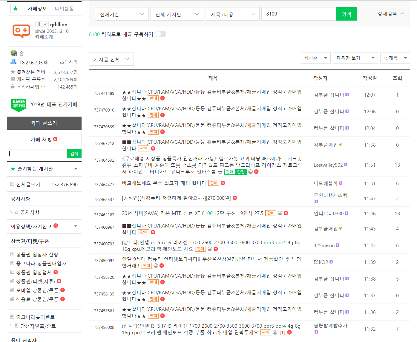 예를 들어 제가 8100 CPU를 사고 싶어서 그냥 검색을 하게되면, 아래처럼 나옵니다.