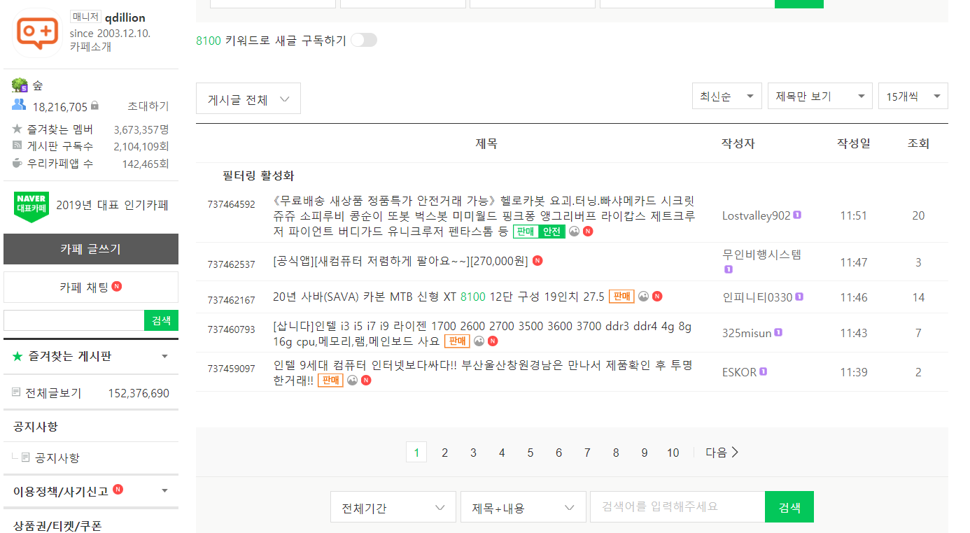 중고나라 사용시에 업자들로 인해서 매물을 찾기 힘든데요.