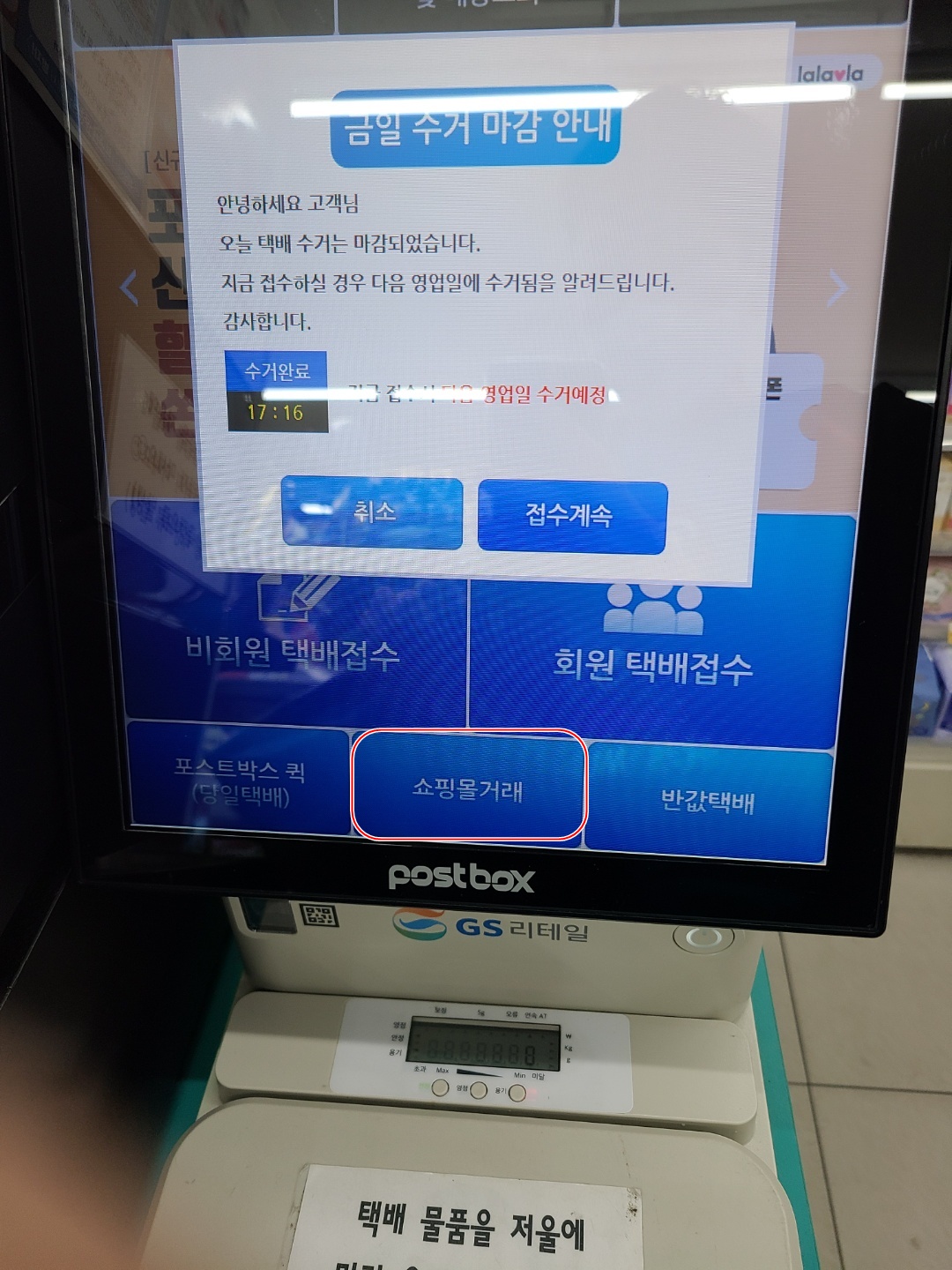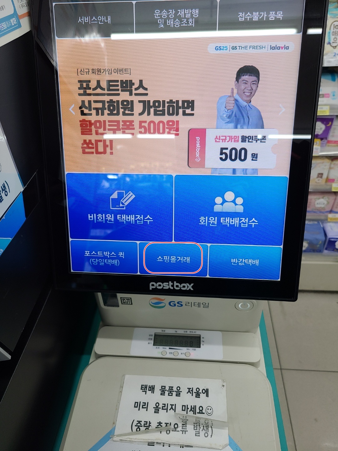 편의점에가서 택배를 접수할때 쇼핑몰 거래를 클릭합니다.