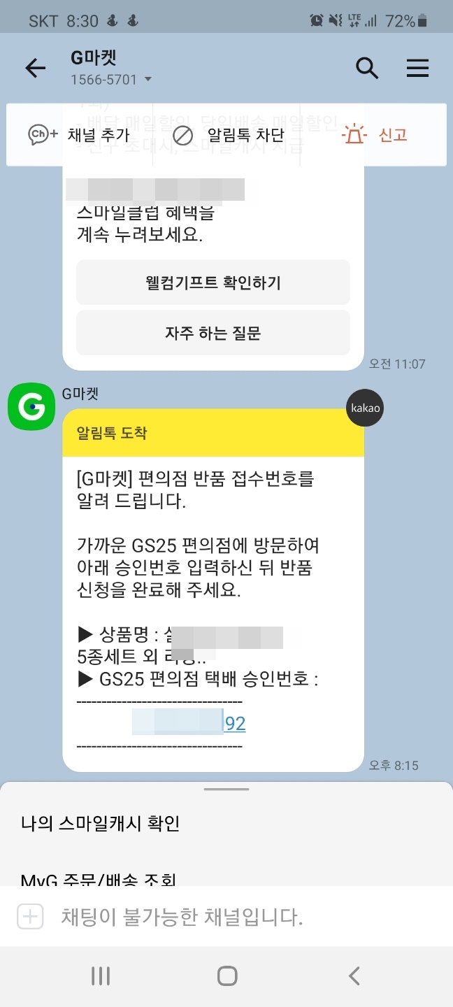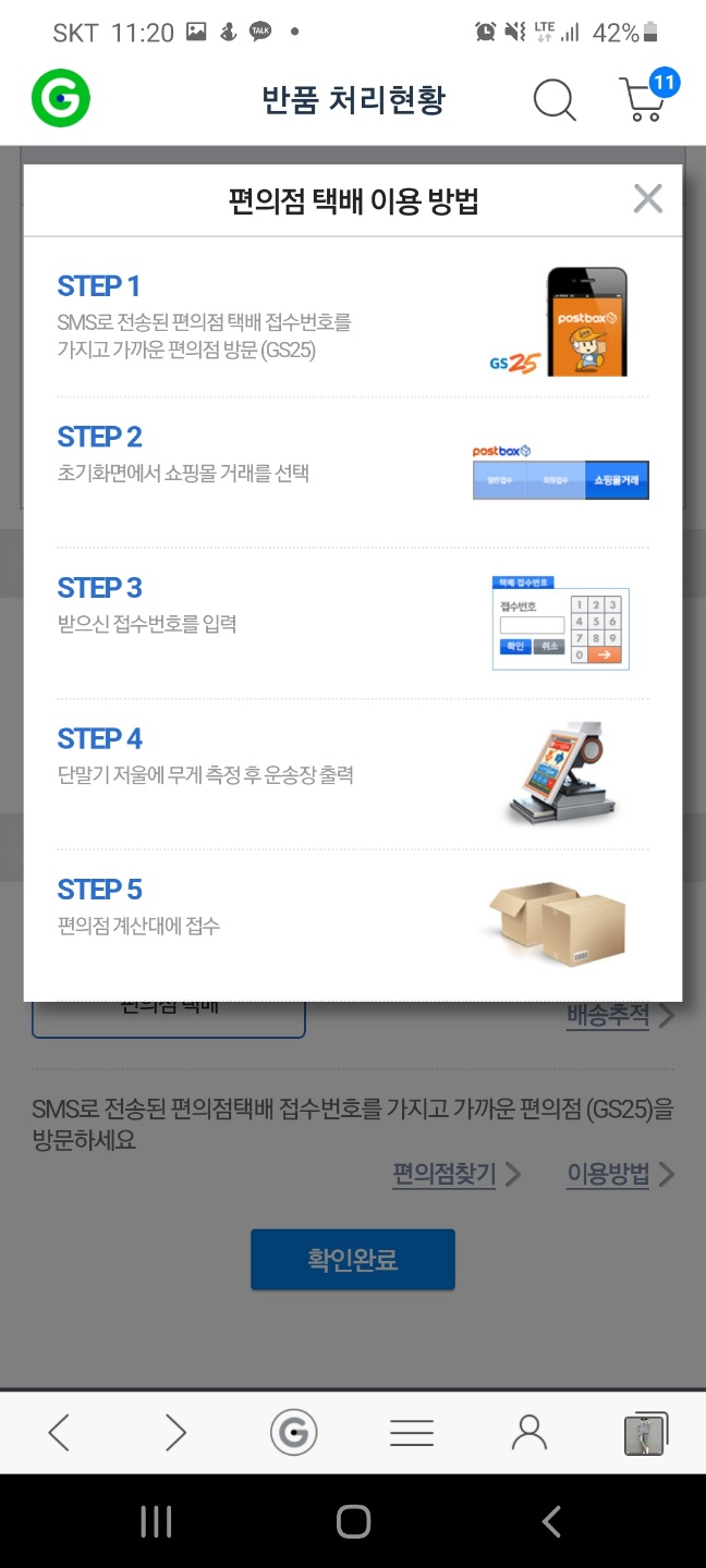 G마켓에서는 GS25의 택배를 활용해서 반품할 수 있는데요.