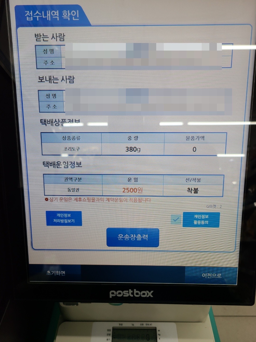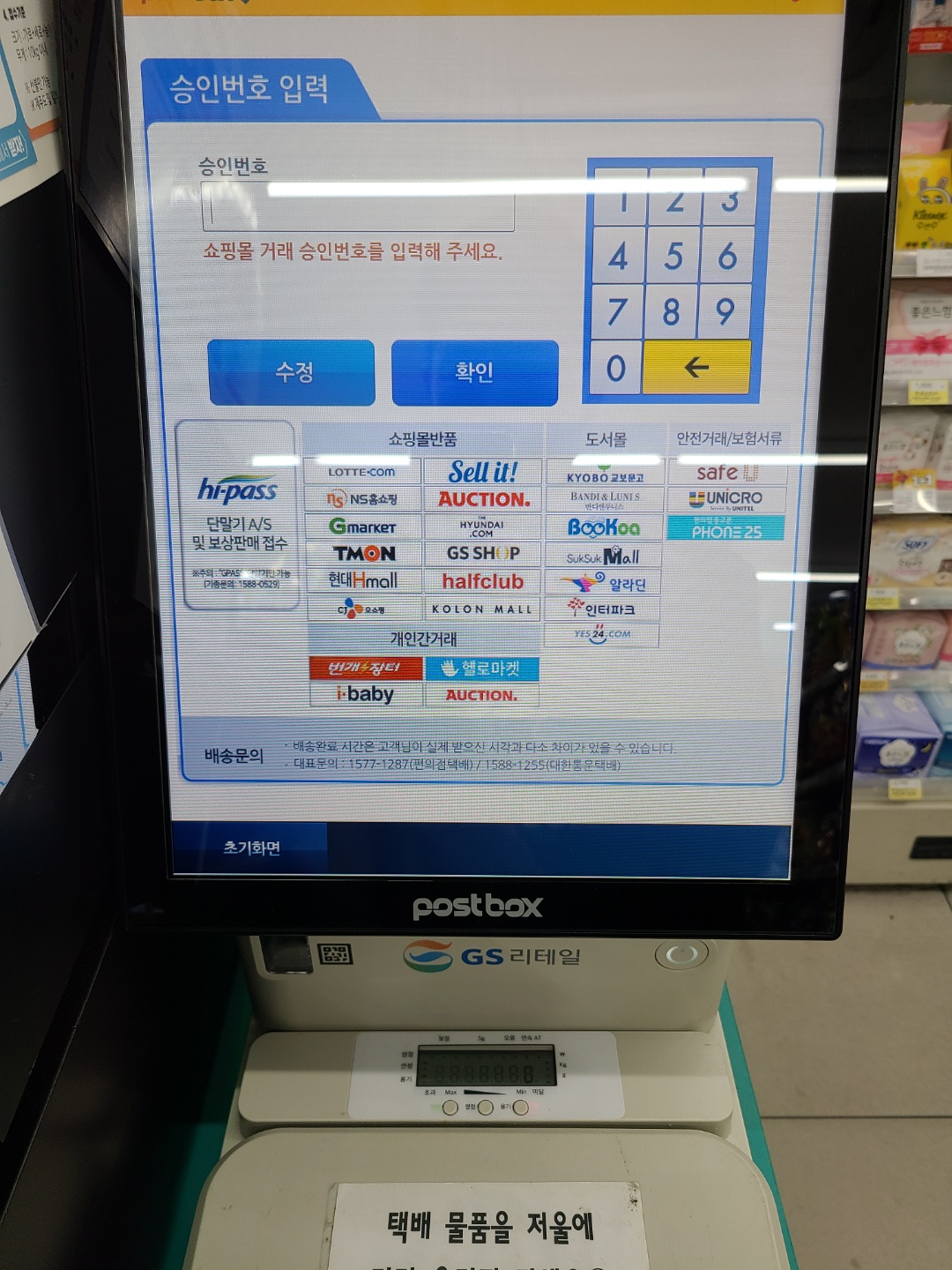 택배 스티커를 붙여 카운터에 제출하면 됩니다.
