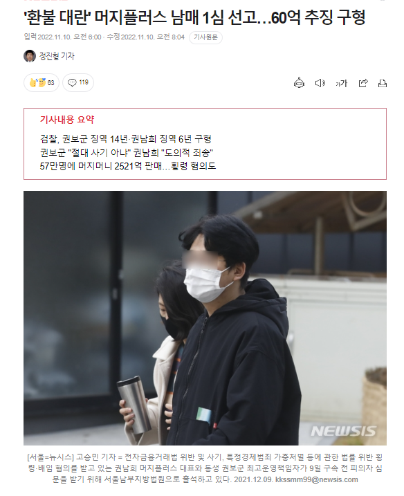 그리고 22년 11월 법원에서는 머지플러스 대표 남매의 1심 재판에서