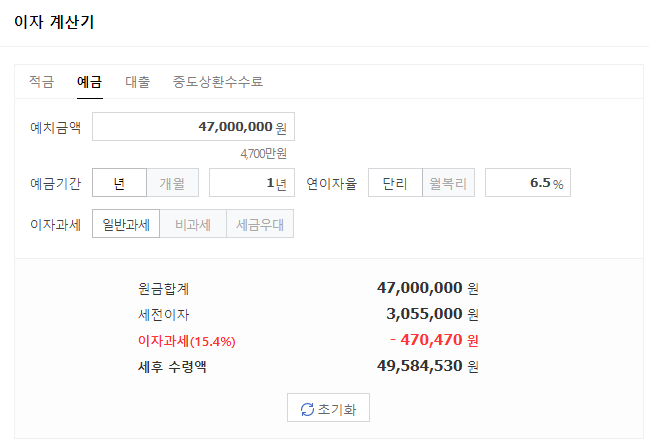 오히려 6.5%예금의 이자가 더 많습니다.