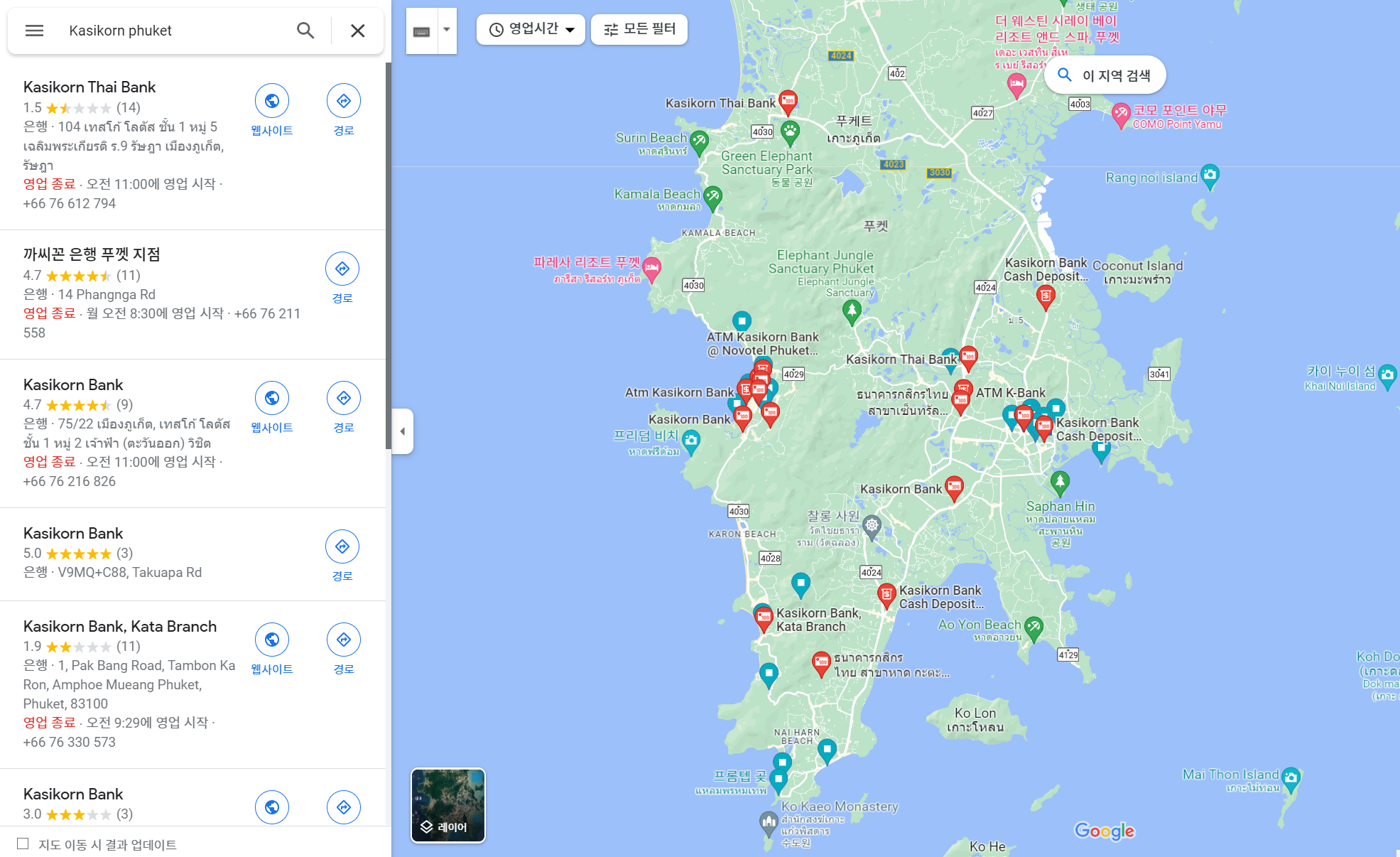 일반적으로 많이 여행 다니시는 phuket을 기준으로 이렇게 많은 ATM기를 찾을 수 있습니다.