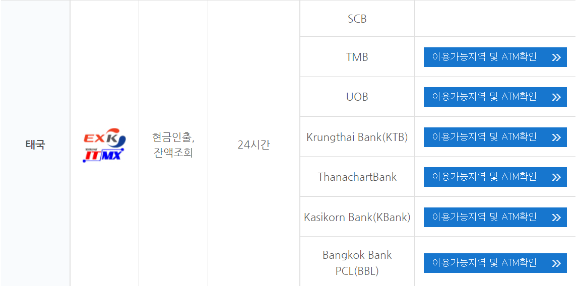태국의 경우 아래의 은행에서 인출이 가능한데요.
