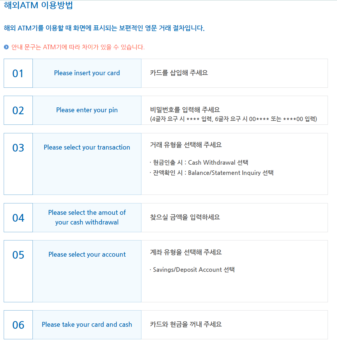 - 현지 ATM기에서 직접 인출하기