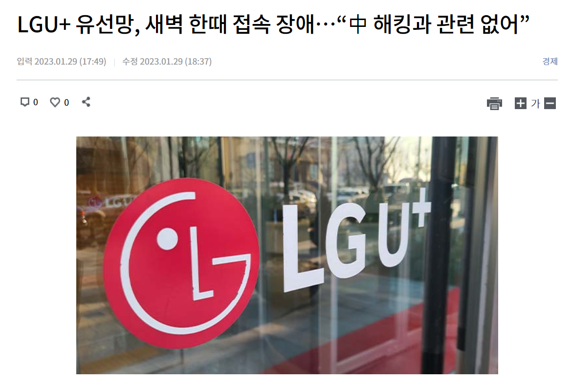 LG유플러스는 이날 접속 장애를 내부 서버에 대한 분산서비스거부(DDoS·디도스) 공격 때문으로 추정했는데요.