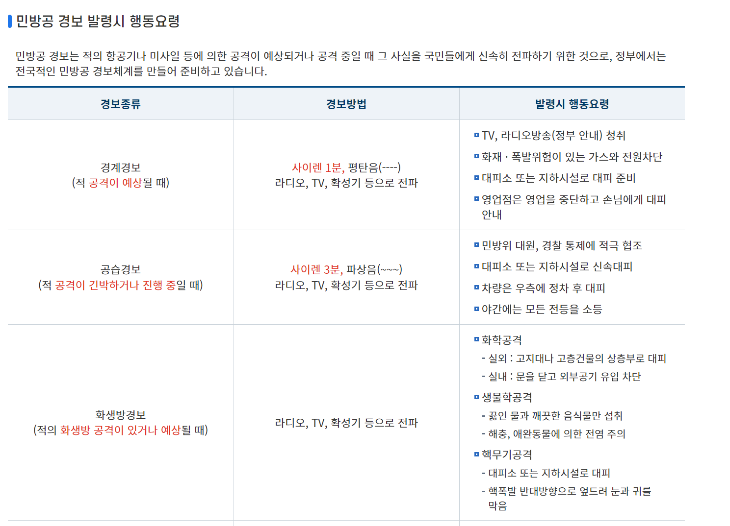 그리고 대피소 또는 지하시설로 대피 준비를 해야한다고 합니다.