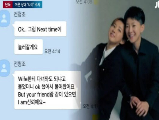 앞서 본인을 미국에서 자란 재벌 3세라고 소개했던 전청조는 “Ok, 그럼 Next time에 놀러 갈게요” “Wife한테 다녀와도 되냐고 물었더니 ok 했어서 물어봤어요” “But your friend와 같이 있으면 I am 신뢰에요” 등 한글과 영어를 혼용한 황당한 내용의 메시지를 보냈다고 합니