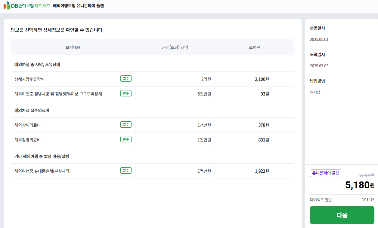 안전하게 가입해서 여행 다녀오시기 바랍니다.